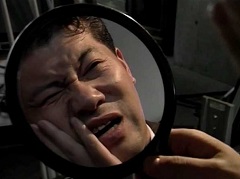 白石ひとみが同棲相手としての吉田潤に「自分がAV女優であってもなんとも思わないのか?」とヤケになる場面がある。吉田は「辞めるか続けるかは自分自身が決めること」「俺は仕事として割り切っている」という話をしている。右の写真は怒った白石が新聞を投げつけた後に平静を装う吉田のシーン。ルックスもさることながら身体に締りがあり浅黒くてカッコ良い。現代のAVでは男優は目立たないようにしている存在だが、ストーリー主体のこの作品では男優の魅力も十二分に味わうことができる。